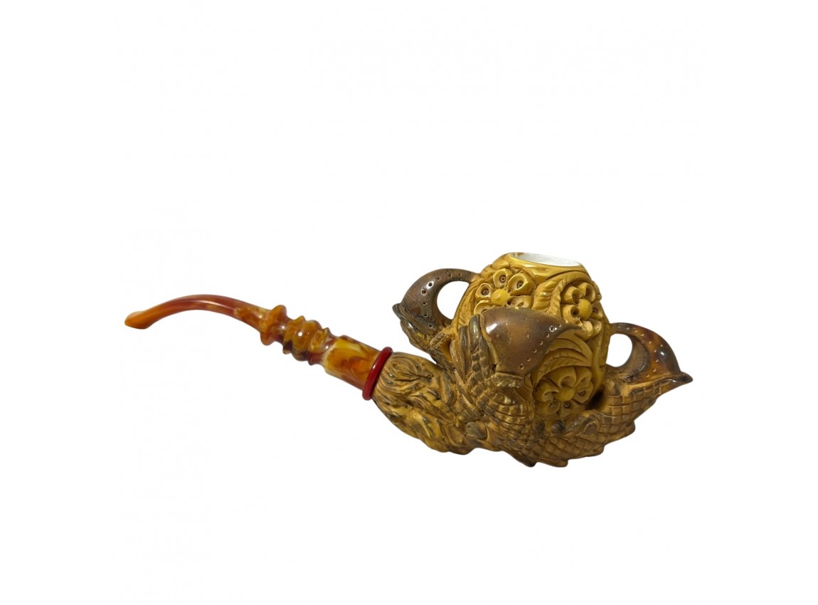 Experience the pinnacle of pipe craftsmanship with this exquisite, hand-carved meerschaum pipe. This pipe is a testament to the skill of master artisans, featuring a powerful and detailed claw design that securely grips the bowl.