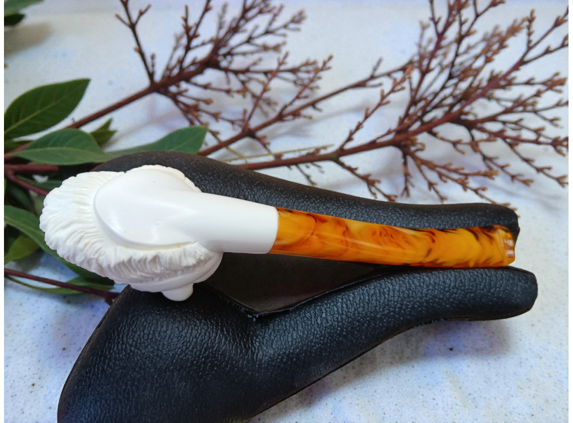 In conclusion, the Block Meerschaum Berserker Pipe unites fierce artistry, mineral purity, symbolic intensity, and high-level performance. Its dramatic carving, evolving patina, ergonomic balance, and superior smoking qualities elevate it far above ordinary pipes. Whether displayed proudly in a collection, used daily, enjoyed during reflective moments, or preserved as a treasured heirloom, the Berserker Pipe embodies both the spirit of the ancient warrior and the timeless excellence of fine meerschaum craftsmanship.