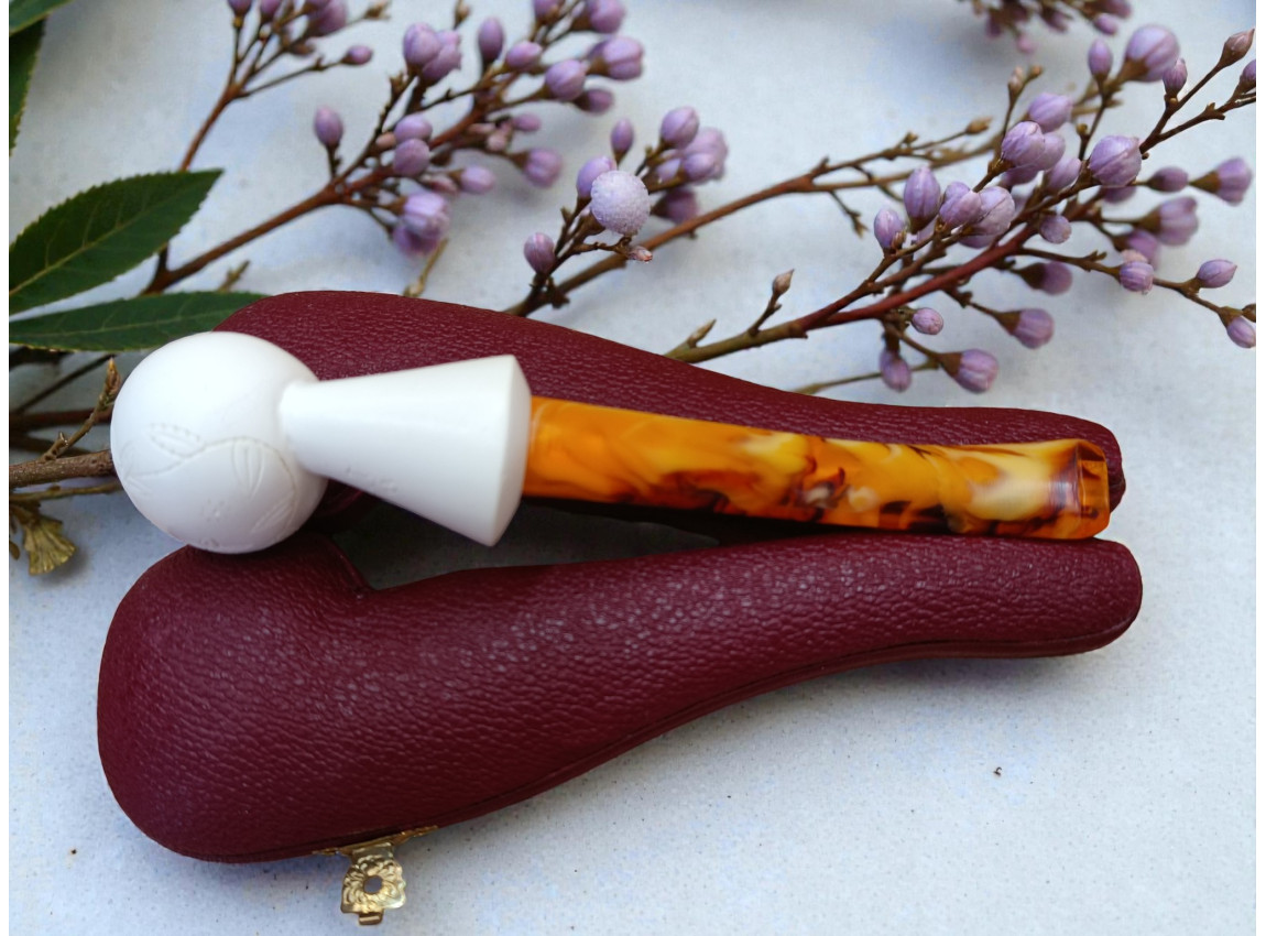 When new, the Blossom Carve Pipe displays an elegant white or ivory coloration, but its beauty deepens over time as the meerschaum develops its signature patina. One of the most compelling features of meerschaum pipes is their long-term evolution. As heat and tobacco oils interact with the mineral, the pipe gradually transforms in color. The recessed areas of the floral carving darken more rapidly than the raised surfaces, creating dramatic contrast that enhances the flower’s dimensionality. Over years of smoking, the pipe may shift through tones of cream, honey, amber, and rich gold, giving it an antique, heirloom quality that cannot be replicated artificially.
