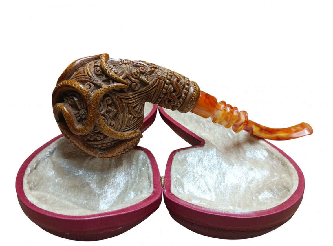 MeerschaumOnline brings Turkish meerschaum artistry to collectors worldwide. The Octopus Block Pipe reflects a fusion of traditional craft, modern design, and storytelling. This pipe embodies the mystery of the ocean and the skill of Turkish artisanship.